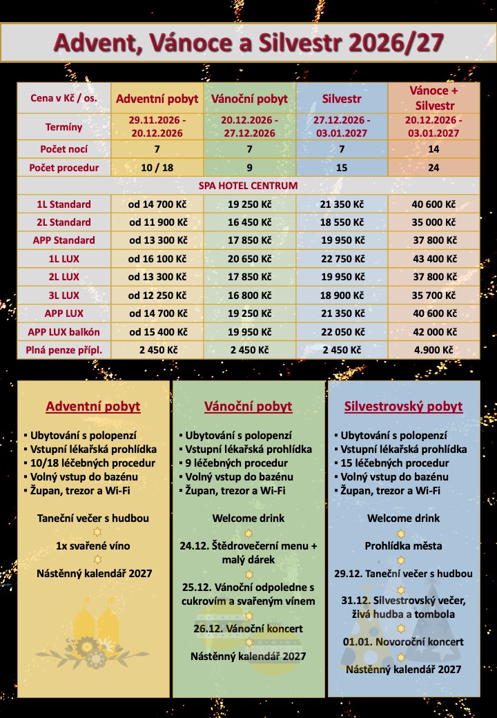 • ADVENT, VÁNOCE, SILVESTR – Lázeňské pobyty s pestrým programem